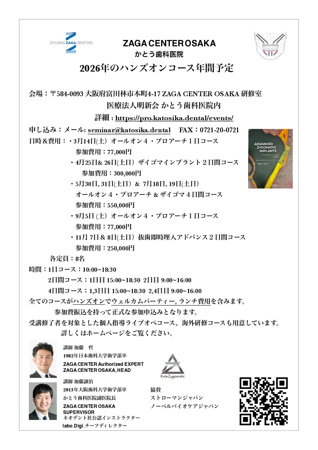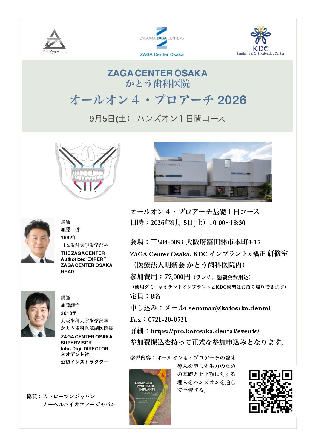 これらコースはあなたの臨床に外傷が少なくコストが削減され予知性が高く治療時間が短くさらに効果的な結果が得られるようにしたい場合にも必ずお役に立つはずです。また経験に関係なくこれらコースは骨移植なしで骨萎縮の症例に対する最新かつ効率的なアプローチを習得し患者にとって最適な結果を得てこの専門分野の市場で際立つことを望んでいるインプラント治療を専門としたいすべての歯科医師を対象としています。